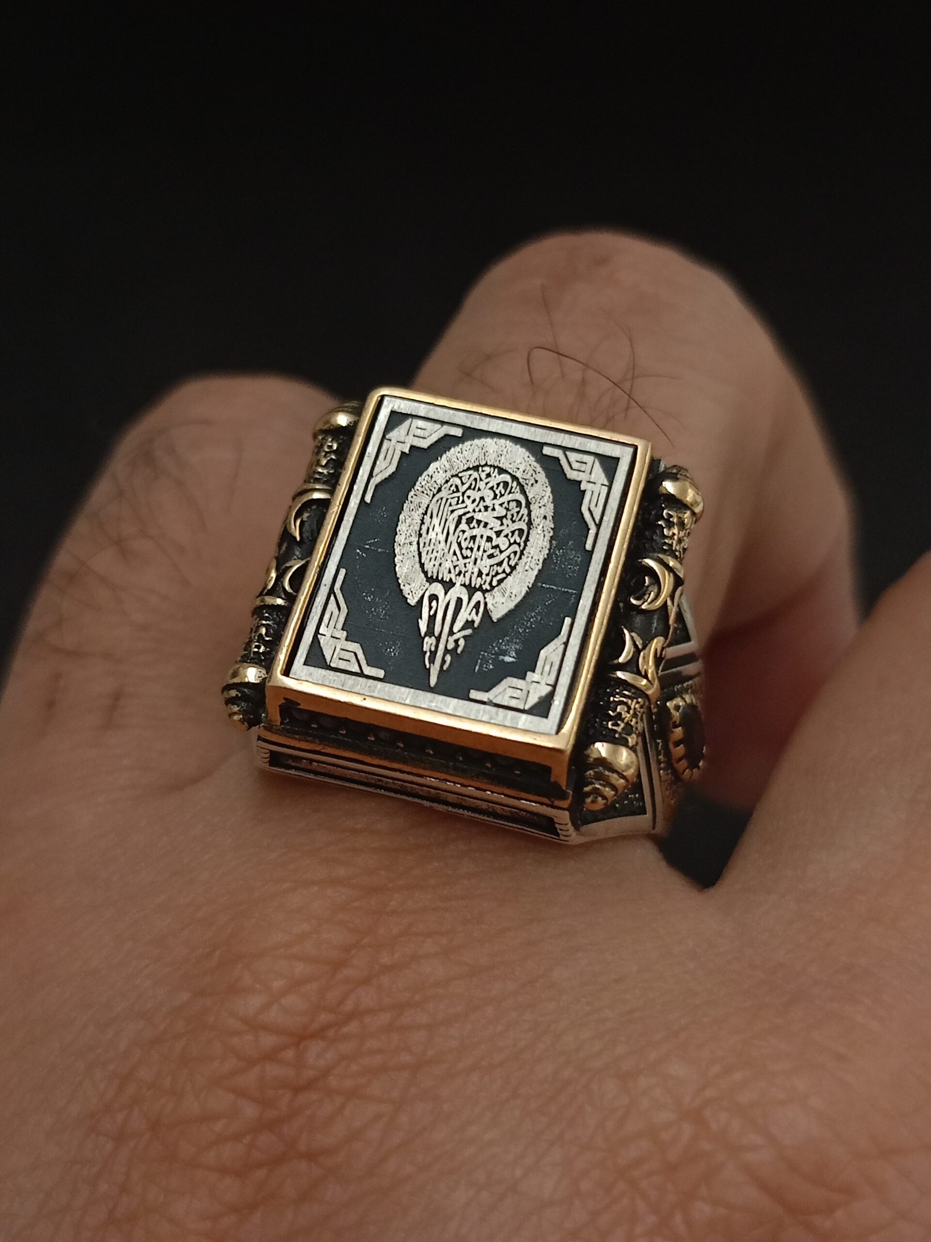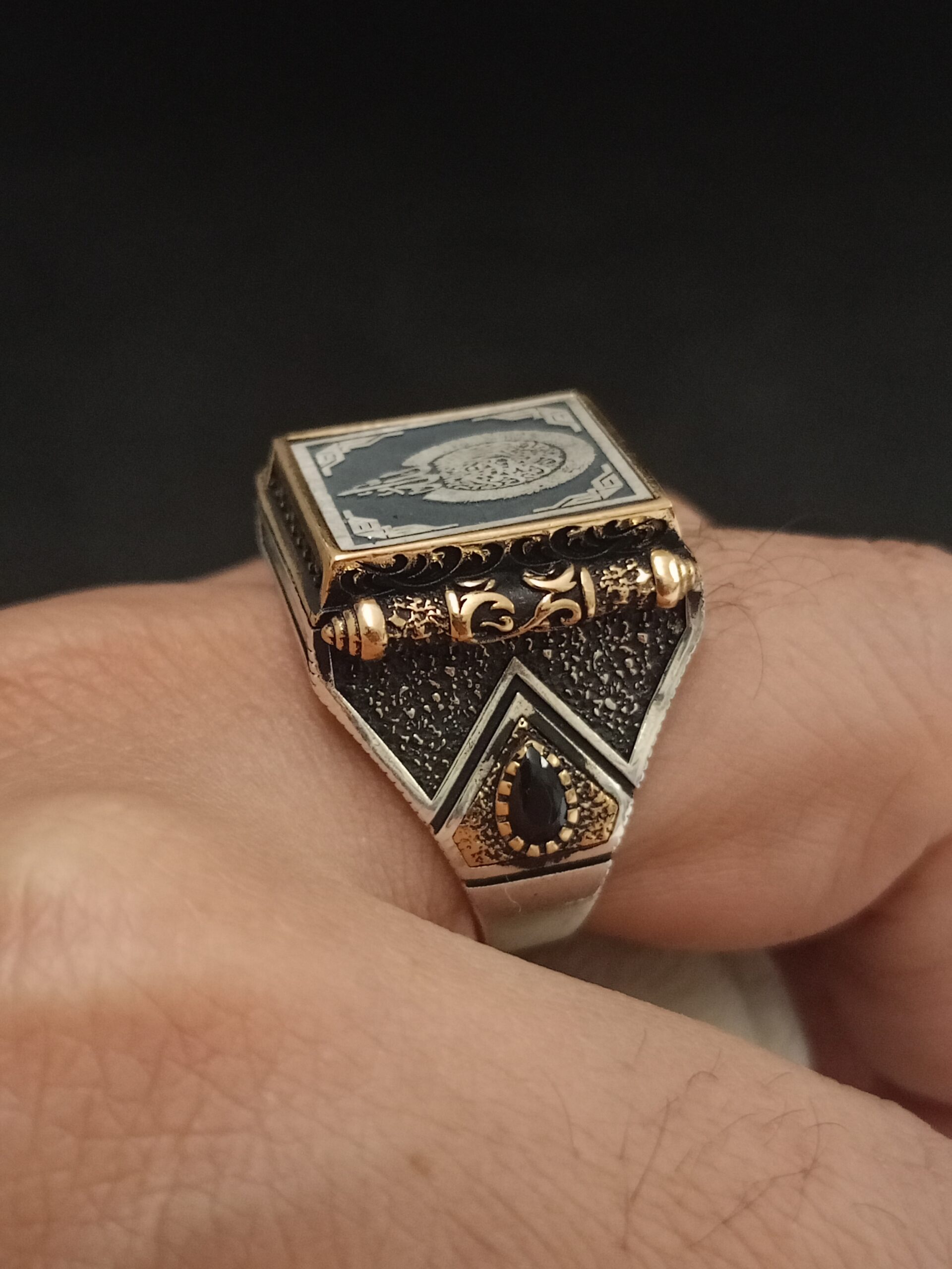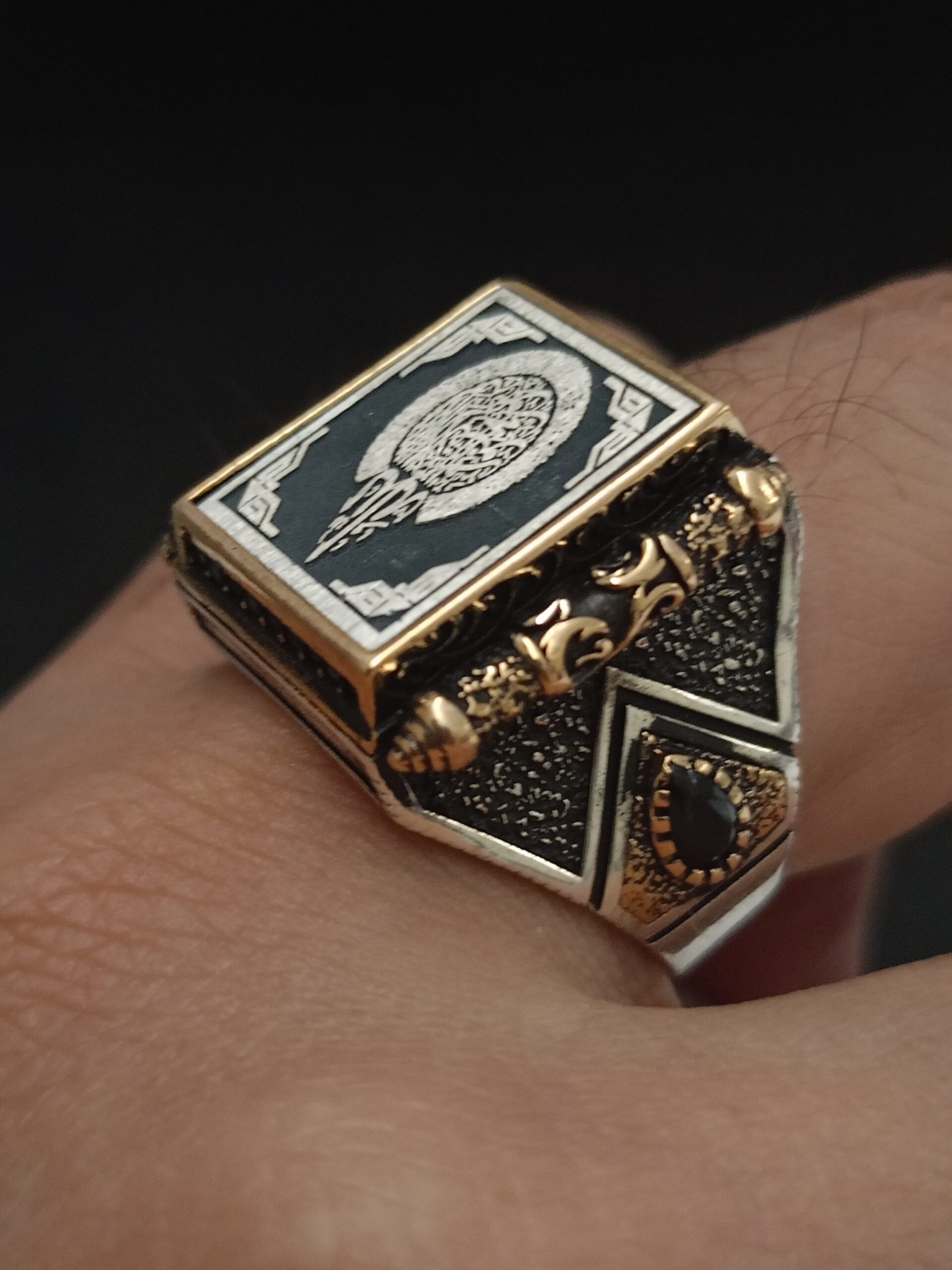 Ayet-el Kürsi yazılı üst düzey ferman kasa işçilikli 925 ayar gümüş yüzük