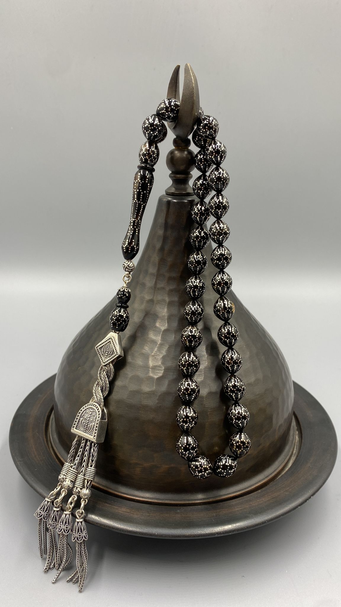 Gümüş çakımlı gümüş püsküllü Caretta Tespih