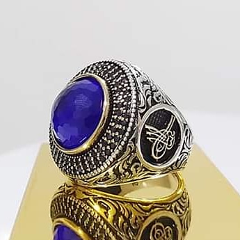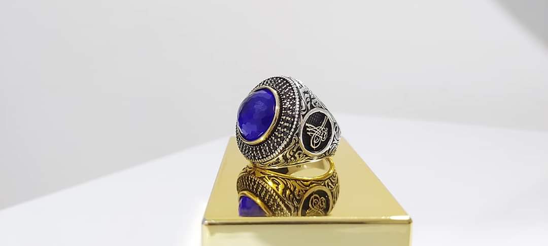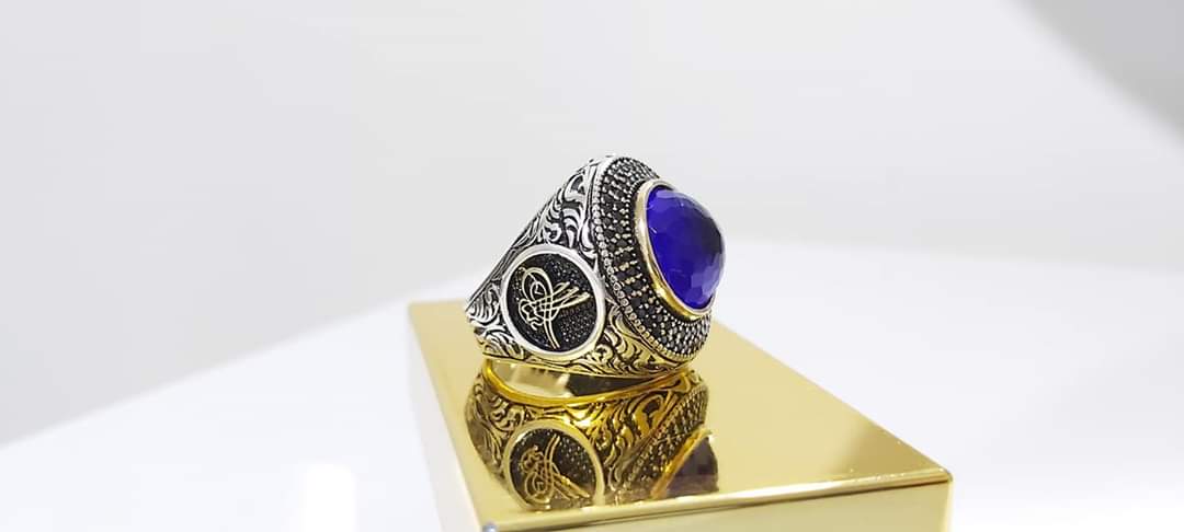 Üst düzey işçilik Hanedan Serisi yan kollarda Tuğra işçilikli 925 ayar gümüş yüzük.
